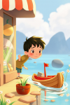 He sees a toy boat.