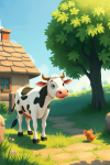A cow is out.