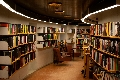 A library has many books.
