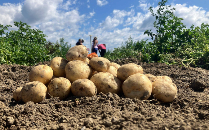 A potato plant has green ...